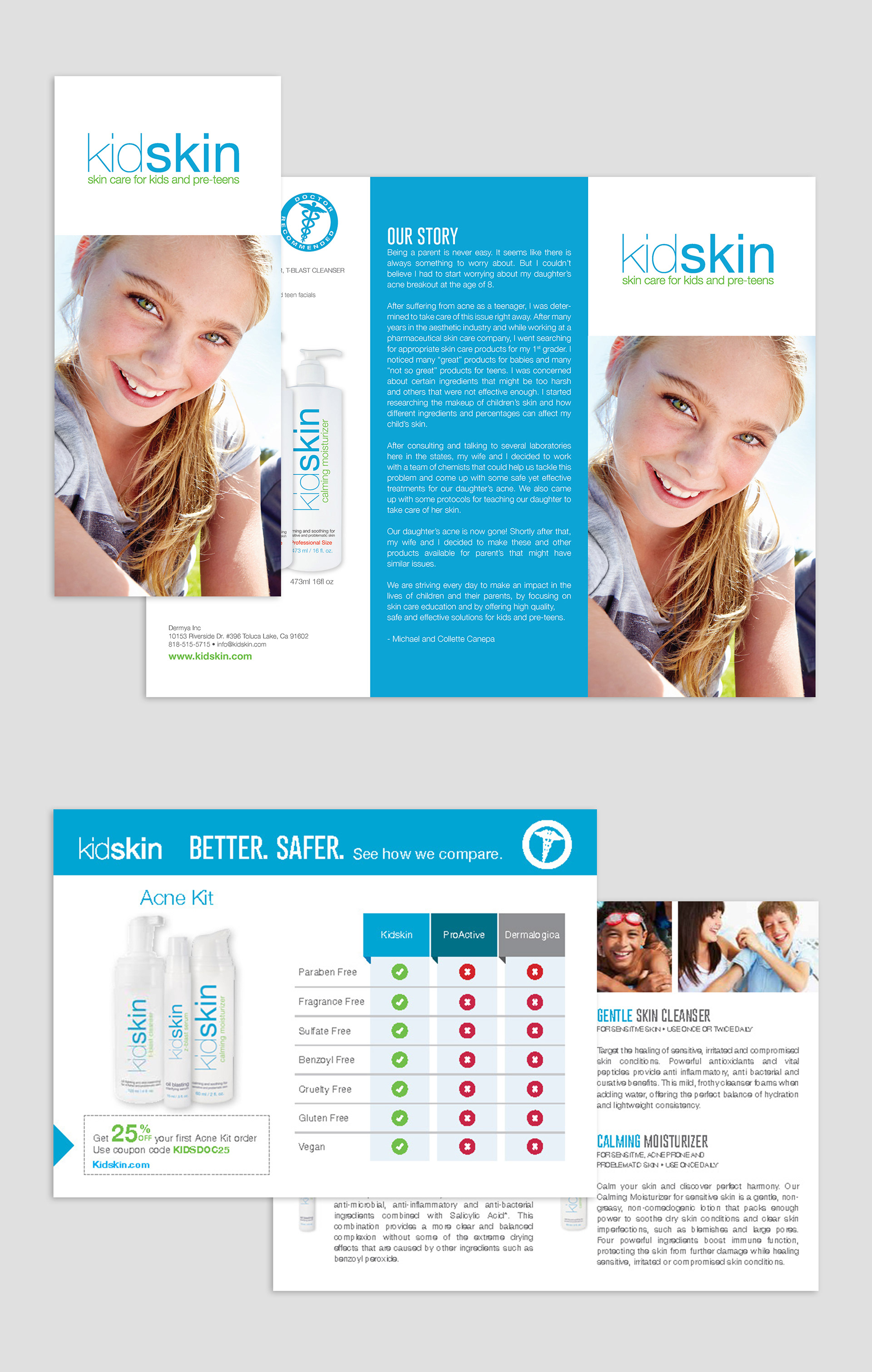 Designed web and print collateral for Kidskin, a kids skincare line. DESIGN • ART DIRECTION • COPY WRITING